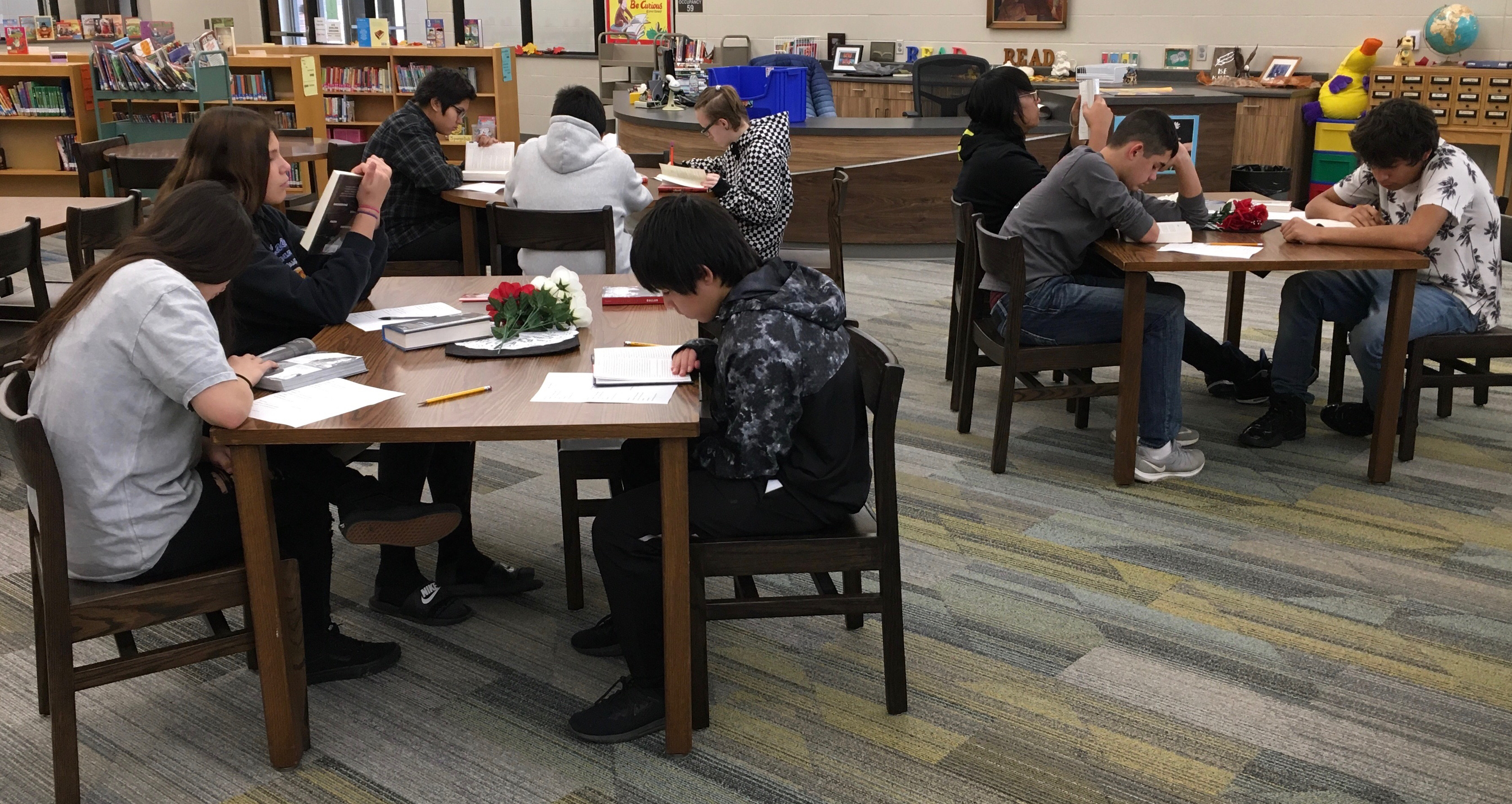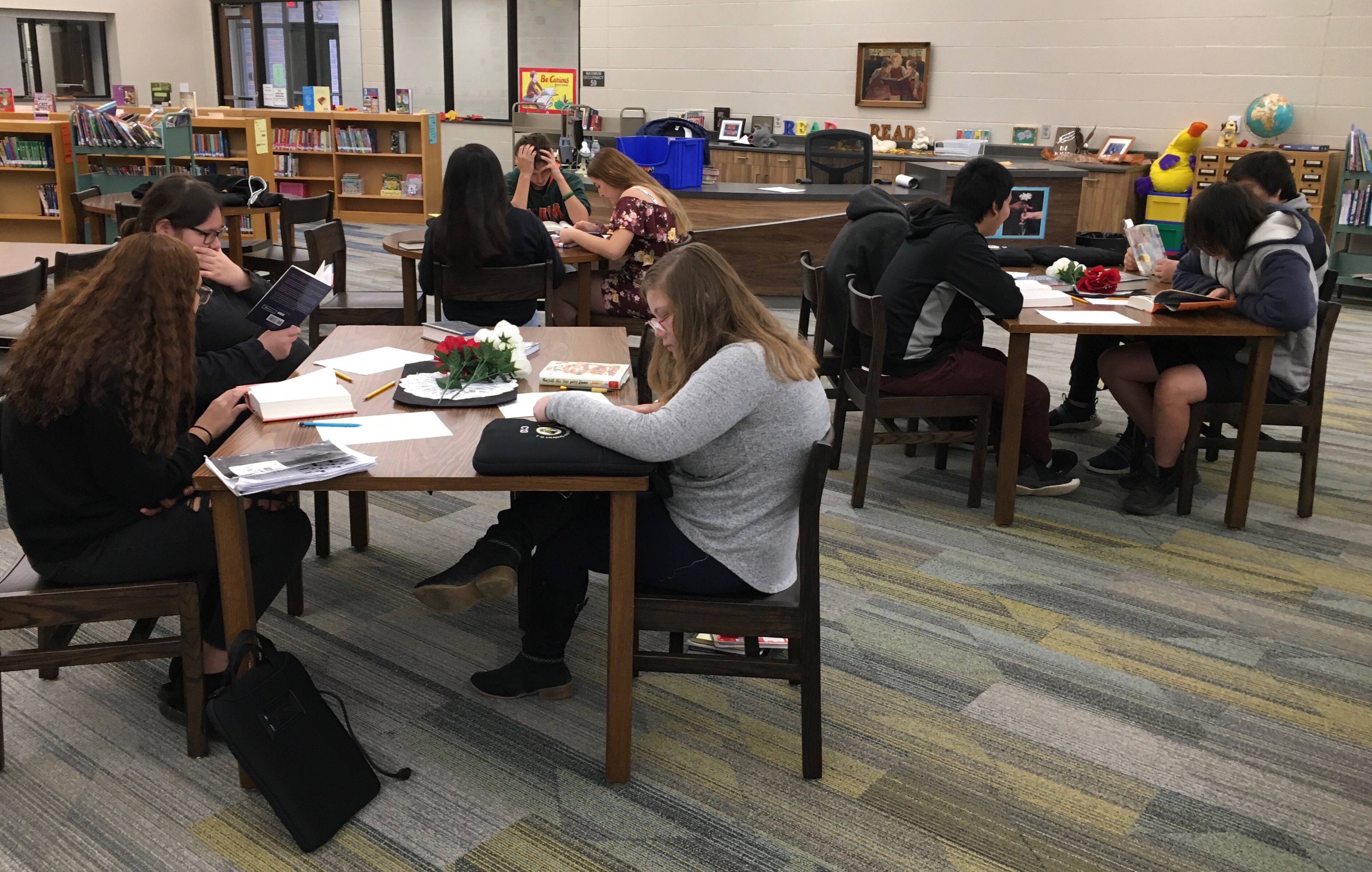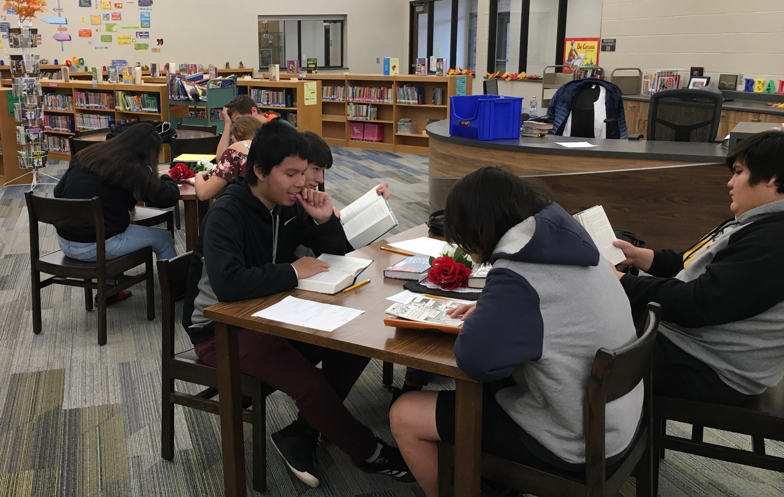 Mrs. DeHaan, our school librarian, put together a Book Buffet for Mrs. Storely’s freshman class.